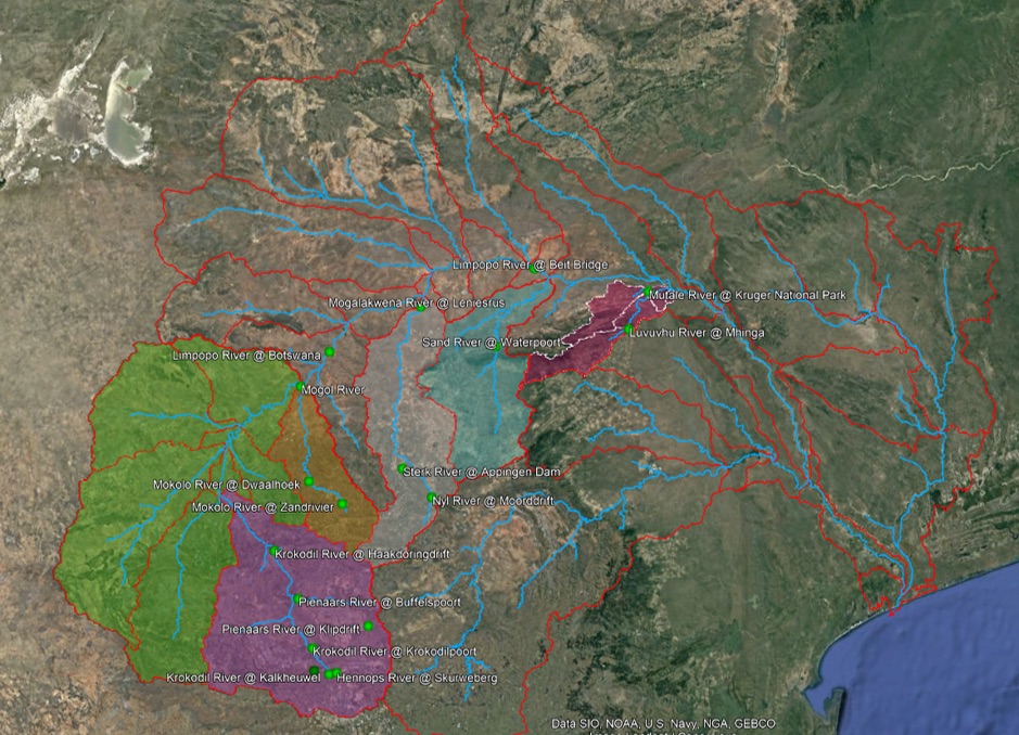 The SWAT model provides key insights into the hydrology of the Limpopo River Basin by simulating daily processes at the sub-basin level. With a catchment area of approximately 410,000 km², it incorporates data from 7 rainfall products, over 500 rainfall stations, 28 reservoirs, and numerous stream gauges to capture the temporal and spatial dynamics of water flow and storage.